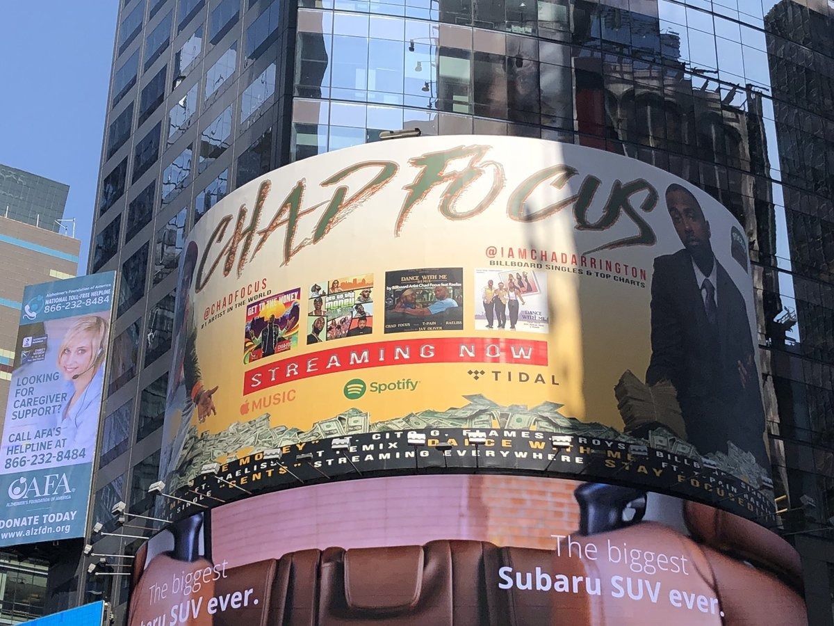 Arrington funded the massive Times Square billboard through the company he formed as part of his musician moonlighting enterprise: Focus Music Entertainment, LLC. Through his efforts, he managed to accumulate more than four million views on his YouTube channel and nearly 200,000 (purchased) Twitter followers. With his newfound audience, “Chad Focus” espoused his path to self-made success, even if it was bought and paid for by his unwitting employer.